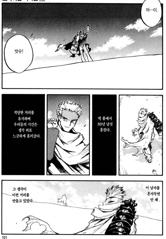 나는 트라이건을 밧슈은 성장 스토리로 보고있는데 구애니 엔딩도 그렇고, 밧슈가 성장하기 위해 필요한 것들 중 독립이 중요한 요소였다고 느껴서