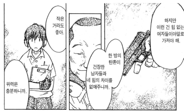 책을 들고있으니 (책이 맞나?) 공부하는 거 같기도하고 부자집하면 구애니 러브핸피스편이랑 그 트라이건 2권 맨 마지막에 파일럿판으로 나온 스테파니 밖에 생각 안나서. 백작의 딸이잖아 그쪽은 총 하나 못들게 생겼던데